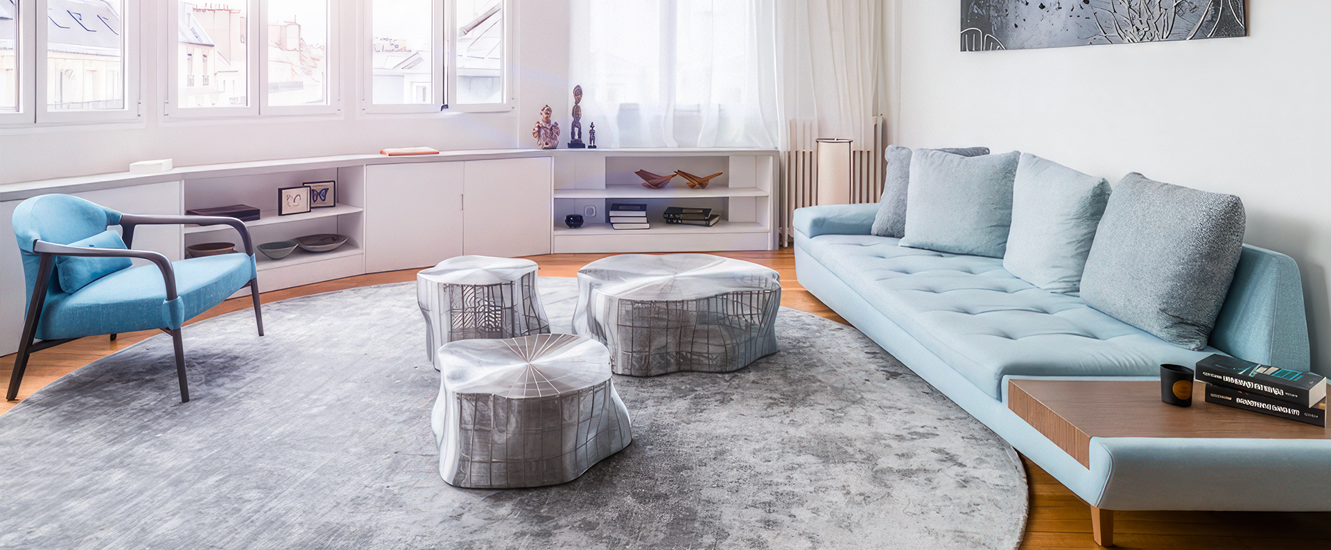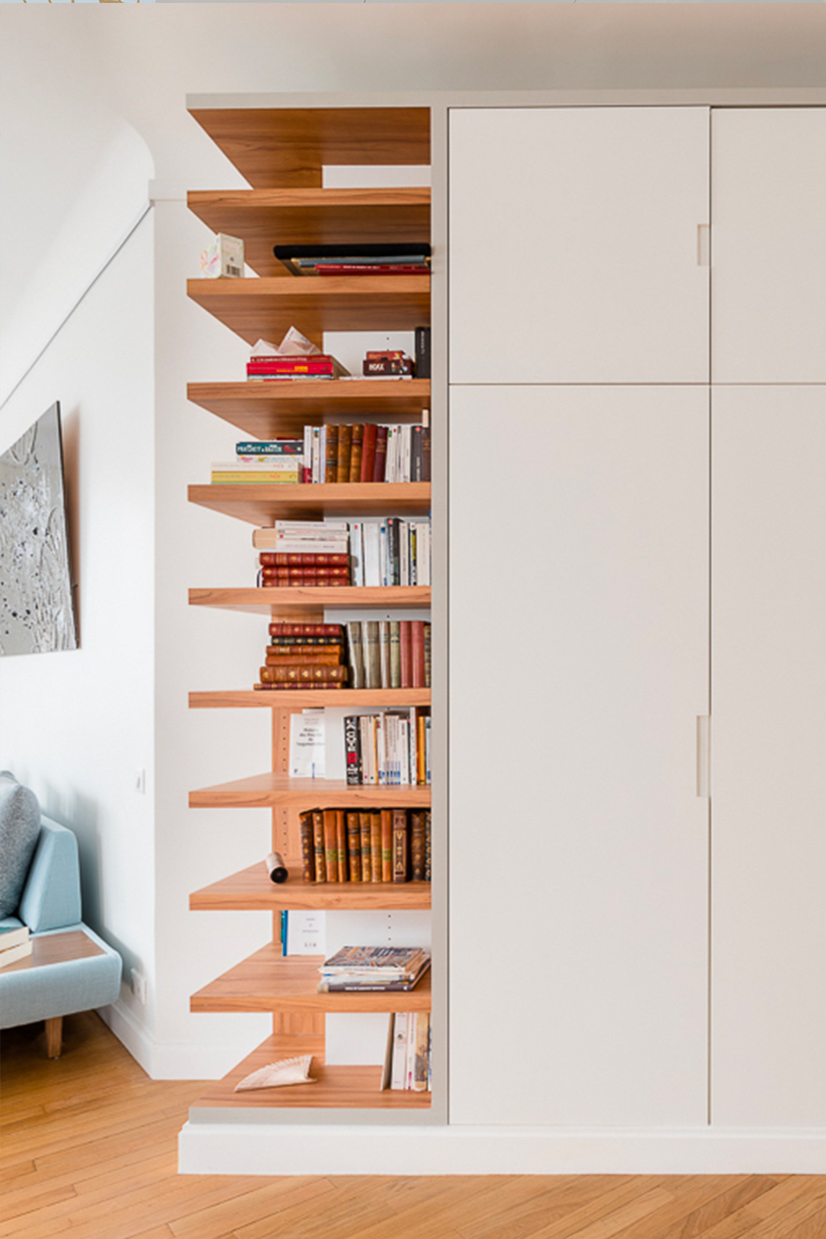Soit créer des rangements intégrés et mobiliers sur mesure dans l’entrée, les circulations, la pièce de vie et le bureau.