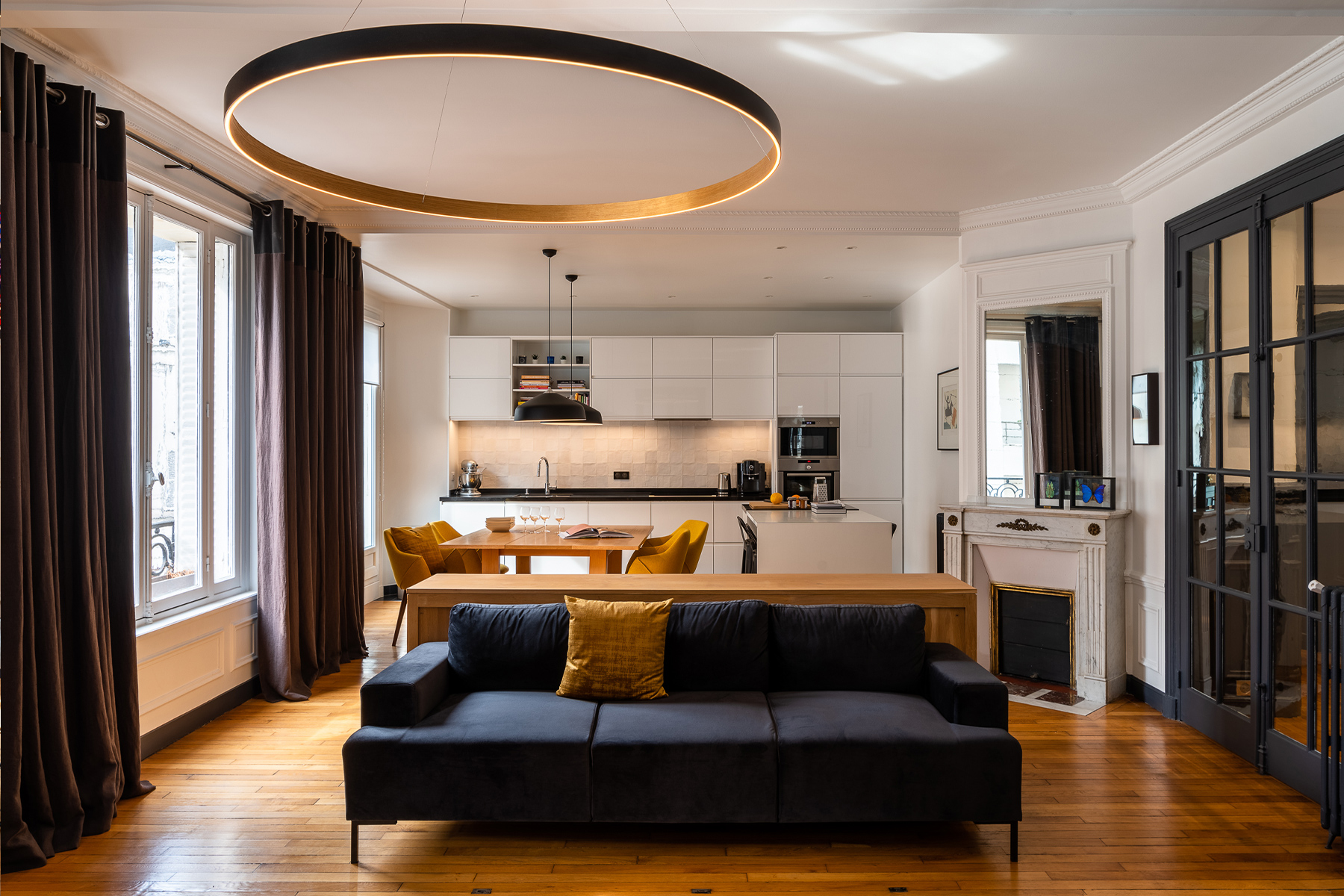 Conserver, valoriser et dans certains cas recréer les codes de l’haussmannien (parquets, cheminée, décors muraux, moulures au plafond).