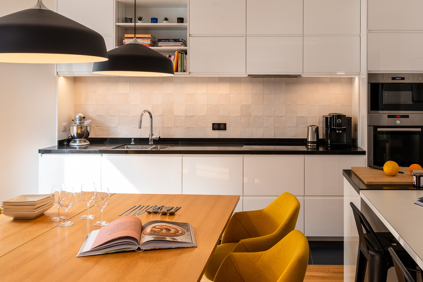 Tout d’abord dans le premier appartement, d’une surface de 100m2, créer un grand séjour / salle à manger avec une cuisine ouverte, une Suite parentale, une Salle de bain, un WC indépendant et de nombreux rangements.
